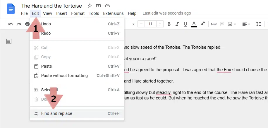 For this guide, we will use the text example of the classic The Hare and the Tortoise fable and fix the spelling of the word “hare” which was misspelled as “hair”.