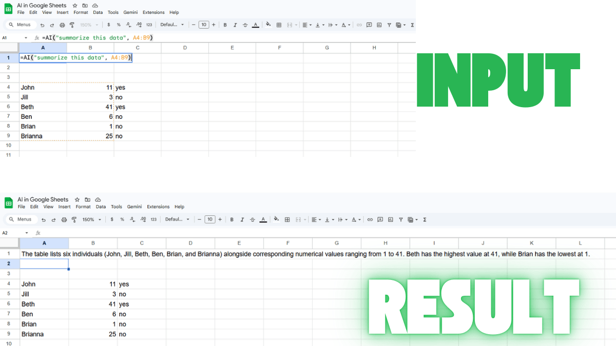 Getting good output from =AI() comes down to how clearly you write the prompt.